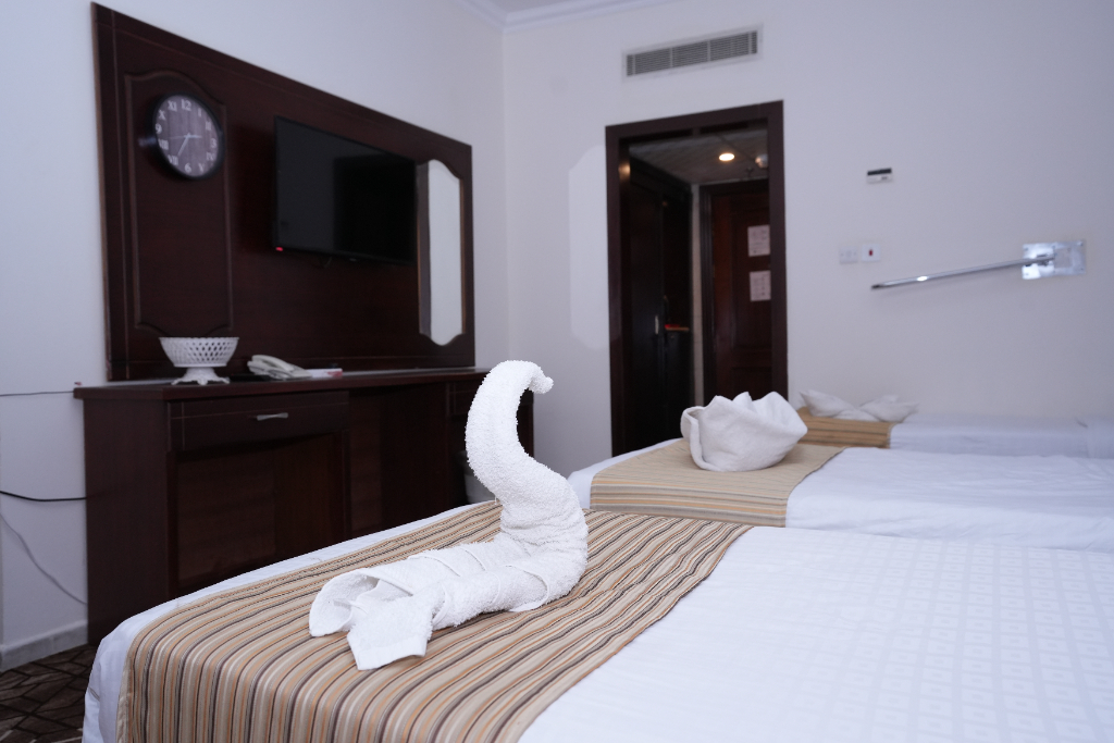 • غرف مريحة:يوفر غرفًا مجهزة بتكييف وتلفزيون وحمامات خاصة، بما في ذلك خيارات للغرف العائلية والثلاثية والرباعية